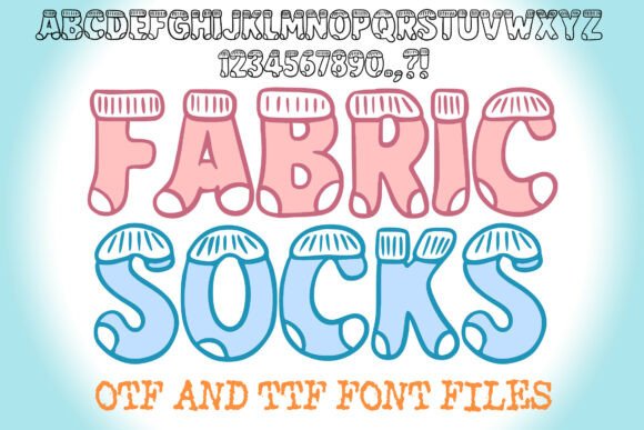 Crafted with a playful charm, the Fabric Socks font is an enchanting decorative typeface that adds a cozy, handcrafted touch to any project. Each character is uniquely designed to resemble a distinct knitted sock, featuring delightful striped cuffs and subtle patterns that evoke warmth and comfort. The rounded, pillowy shapes give the letters a soft and inviting personality, as if they were lovingly hand-stitched. Its whimsical and friendly aesthetic makes it an excellent choice for children’s books, craft projects, packaging, and branding for cozy apparel or home goods. The font’s distinctive design ensures that titles, headings, and logos stand out with a hint of homemade sweetness and creative flair, bringing a sense of nostalgic comfort and playful fun to every design.