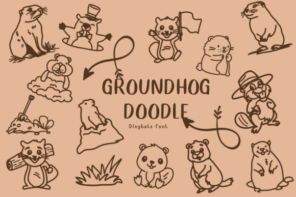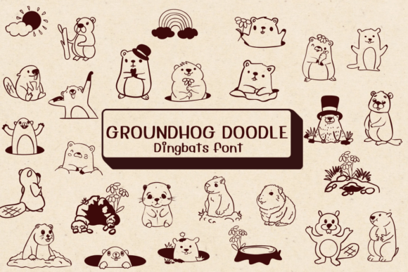 Groundhog Doodle is a whimsical and playful dingbat font featuring charming groundhog illustrations. It’s perfect for adding a touch of fun to your designs, substituting traditional letters with delightful groundhog images. Ideal for crafts, invitations, and various creative projects!