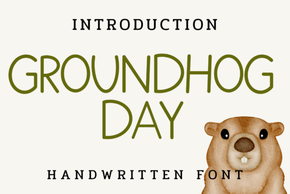 Embrace the seasonal charm of Groundhog Day, a clean and whimsical handwritten font. With its rounded, friendly letterforms, this font is ideal for greeting cards, event posters, classroom materials, and any creative designs that require a fun and inviting feel. Add a touch of whimsy to your projects with Groundhog Day