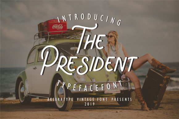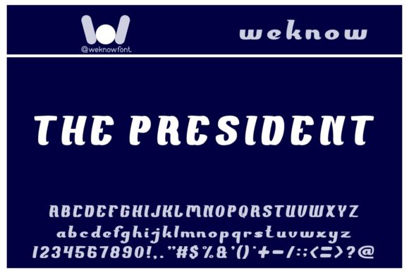 The President is a playful and charming display font that brings a delightful touch to your designs. Incorporate this beautiful font into all your creative projects and see how it makes them truly shine!